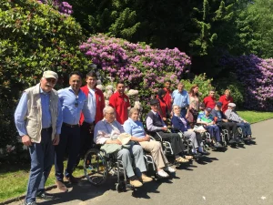 Sommerfest beim Pflegedienst Imeraj mit fröhlichen Gästen im Garten